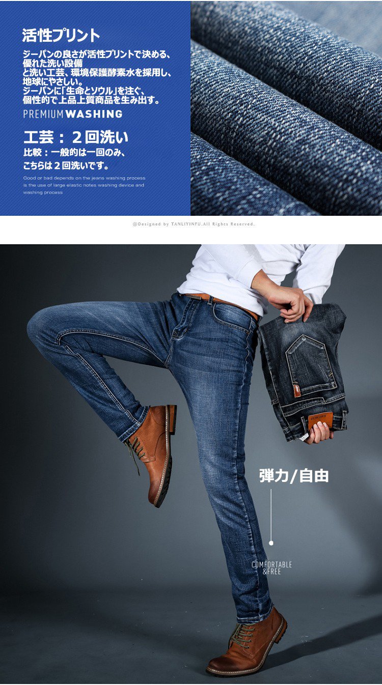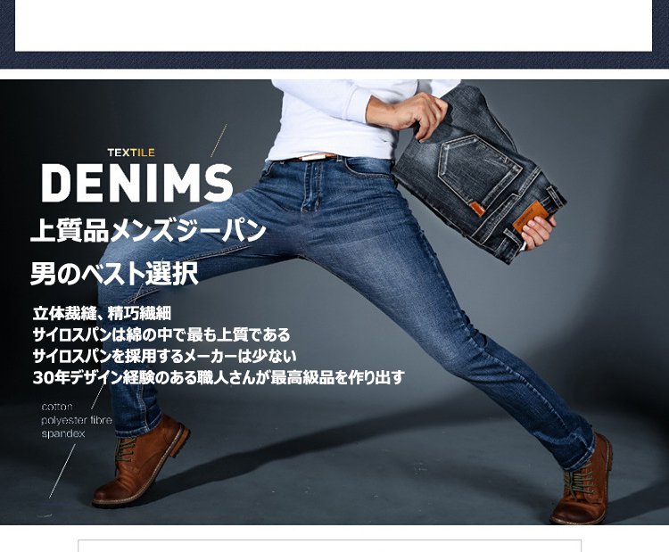 春の新商品 男性にぴったりな優良品質ジーパン 弾力性抜群・快適通気・柔軟立体 タイムセール¥5380円 追加購入¥1590円